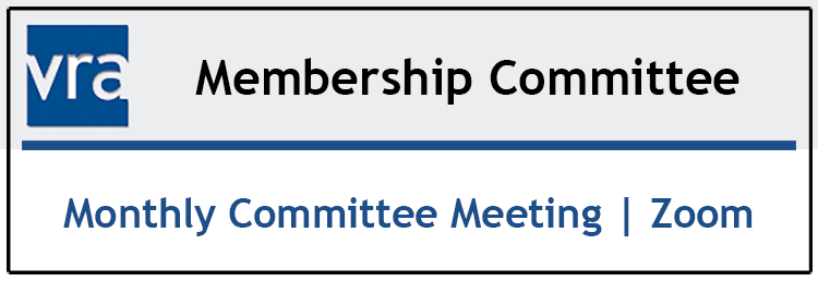 Join the Membership Committee for their monthly meeting! All members and potential members are invited to attend. Email membership@vraweb.org with any questions or to receive the Zoom link.